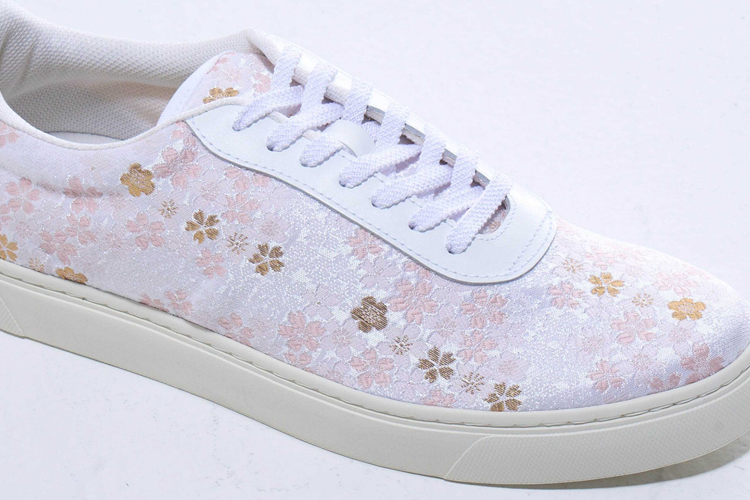 本商品は、西陣織の商品特性上、繊細なアッパー素材を使用しております。そのため、取り扱いには十分ご注意ください。着用時には、繊維のスレや引っかかりが生じる場合がありますので、硬い物との接触や強い摩擦はお避けください。汚れが付着した際は、乾いた柔らかい布で軽く押さえるようにお手入れしてください。